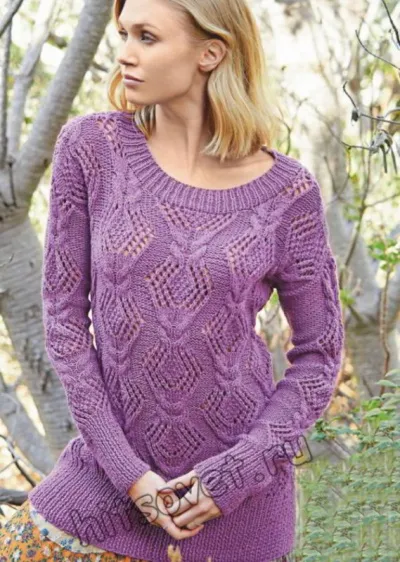 Описание вязания удлиненного джемпера с ажурным узором из кос