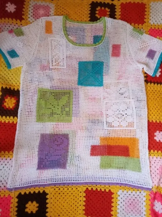 Готовлюсь к лету.Туника пэчворк Летний калейдоскоп (филейное вязание)