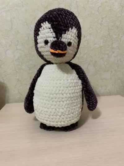 Плюшевая пряжа, очень необычного цвета- баклажан, грудка и часть мордочки белая. Шапочку и шарф связала из Пряжи- Alize softy Plus.