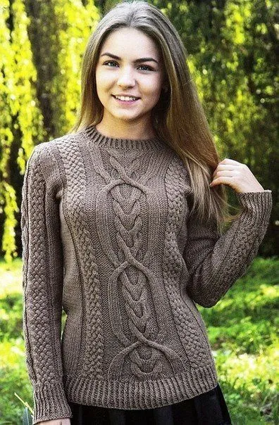 Нежный пуловер с фантазийным узором, вяжем спицами