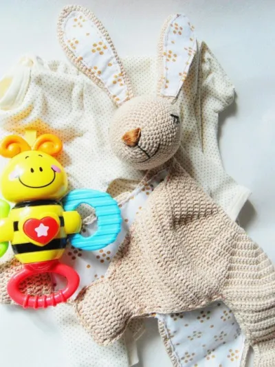 Вяжем нежный комфортет в виде зайки