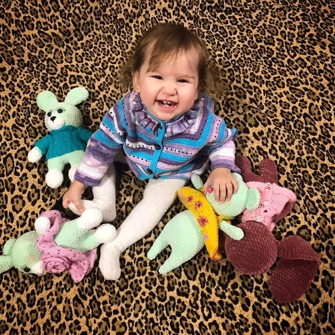 Добрый вечер, Лидочка! Сколько радости у девчульки! И все благодаря игрушкам, связанным золотыми ручками! Кофточка очень идет малышке! Смотрю и улыбаюсь))) Как солнышко на страничке сияет!
