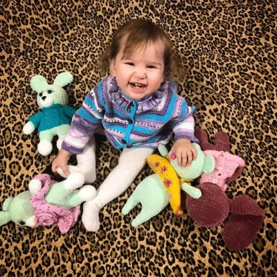 Малышка-просто чудо! Замечательный стимул для творчества! Отличные игрушки и кофточка тоже!