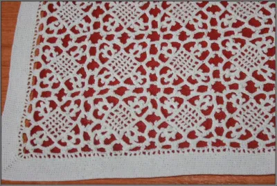 Давно хотела связать себе симпатичную прямоугольную салфеточку,но никак нее могла определиться с узором,а тут увидела схемку"Королевского квадрата" и сразу все сложилось...Обвязку сделала просто столбиками без накида - мне показалось,что основной узор от этого только выииграет,а с ажурной обвязкой будет сливаться...Вязала из итальянского ириса -хлопок 100% 459 м в 50 г.Крючок 1,0 мм.Салфеточка получилась размером 41,5 х 44 см.