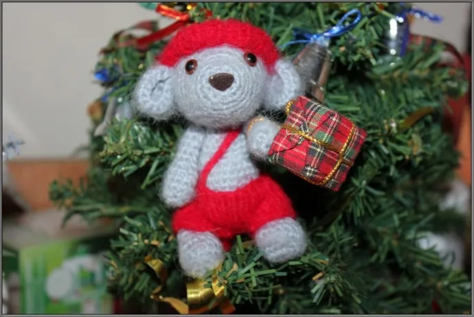 В этом году вообще не хотела вязать игрушки к НГ,но все-таки пришлось...Связала только двых мышат самым близким друзьям.Не успела только нормально сфоткать,т.к. друзья приехали неожиданно и фоткала буквально на ходу...Так что прошу за фото извинить...