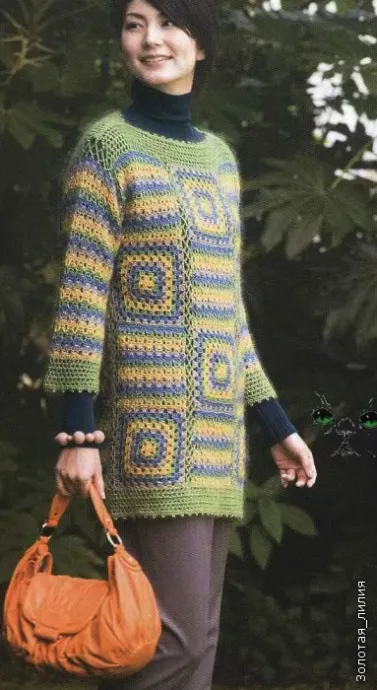 Туника крючком. Бабушкины квадраты и утилизация остатков