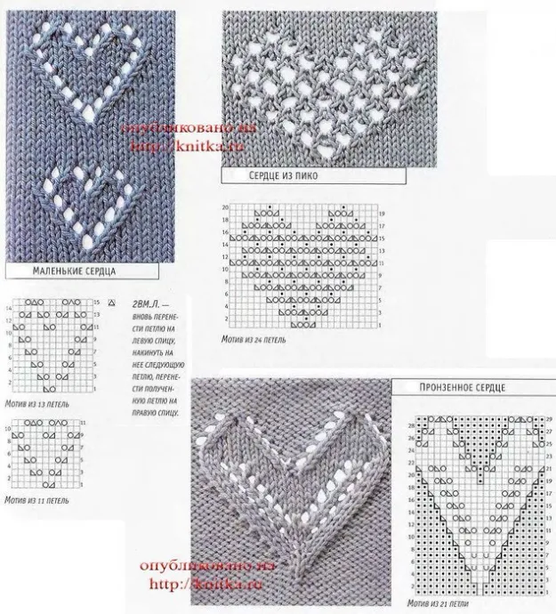 Узор «сердечки» спицами