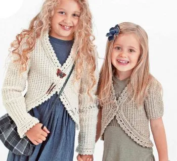 Для планки-каймы болеро на спицы № 3 набрать 7 п. и вязать узором с дырочками. Через 120 (140/155) см от наборного края, после 4-го р. раппорта (для измерения слегка растянуть планку в длину - кайма должна проходить вокруг всего болеро), петли закрыть. Прямой край планки пришить к болеро, начиная и заканчивая работу у середины горловины спинки. Наборный и закрытый края планки-каймы сшить.