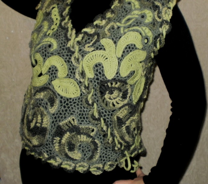 Ирландским кружевом заболела давно и неизлечимо. Хочу представить на ваш суд одну из своих первых работ. Мы привыкли, что изделия, выполненные в этой технике, делаются тоненькими ниточками и маленьким номером крючка. Я попробовала связать из толстых ниток. И вот , что у меня получилось.