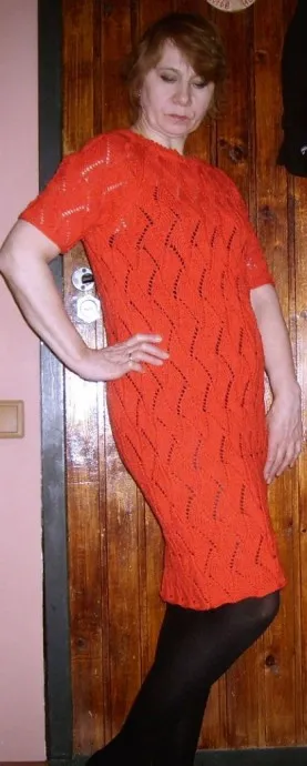 Платье красное спицами