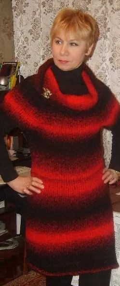 Вот такая туника. Связана спицами круговыми с ворота. Это из одного мотка.