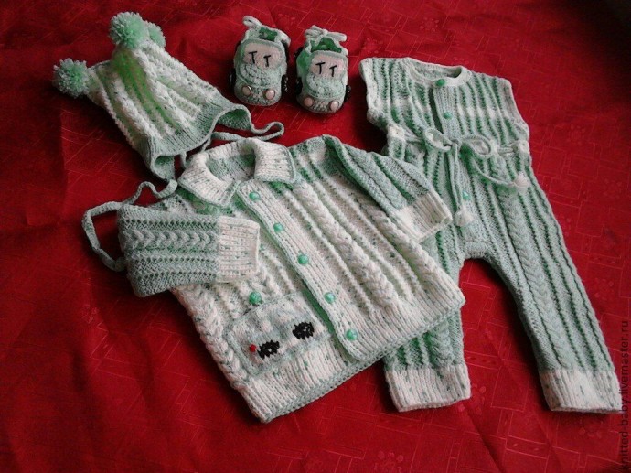 Такой вот комплектик (из 4-х предметов) я вязала своему внуку для прогулок в коляске в прохладную летнюю погоду и для утепления под комбинезон. Но он великолепно подойдет всем малышам - при правильном выборе цветовой гаммы. А узоры из рельефных полос смотрятся потрясающе на любых моделях любого размера: красиво и модно. Комплект связан спицами и крючком из детского акрила: Пехорка Детская Новинка и YarnArt "BABY COLOR" . Вещички получились мягкими, легкими, практичными. К тому же они не колются и не пушатся.