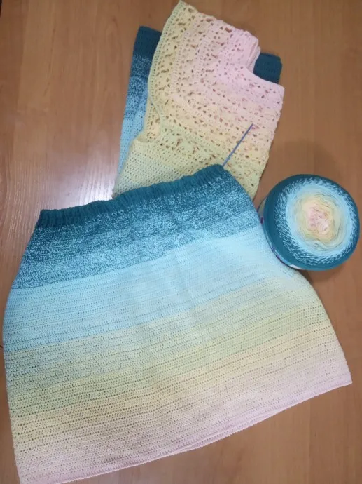 Спасибо! У меня ещё 3 моточка разных цветов и упаковка с люрексом и планов кучка. Нужно младшей платье, старшей топ.