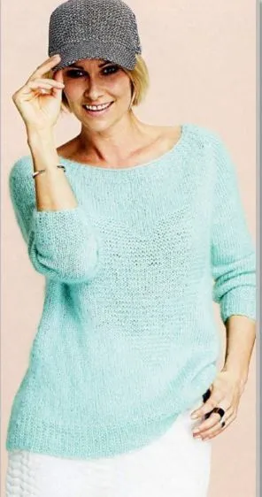 Вам потребуется: пряжа 1 (100% хлопка; 50 г/220 м) - 4 (5) 5 (6) мотков ментолового цвета, пряжа 2 (70% мохера, 30% шелка; 25 г/210 м) - 4 (5) 5 (6) мотков ментолового цвета;