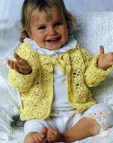 Вам потребуется: 600 (700) г жёлтой пряжи (100% хлопка, 125м/50г), крючок № 3, 5 пуговиц.