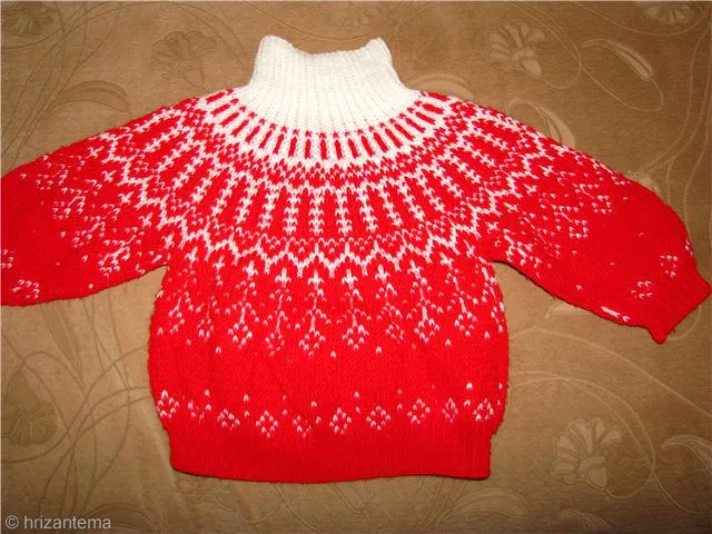 Описание вязания свитера с круглой кокеткой на ребенка (размер 86-92 на возраст 1,5-3 года)