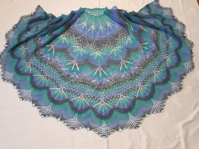 Сегодня хочу показать Вам шаль, по истине королевских размеров 210см на 113 см.. Шаль связана по схеме скатерти.