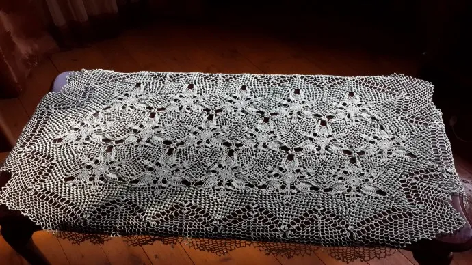 Тогда это скатерть на маленький столик. Крючок № 1 и тонкие нитки — и то я вязала ее долго.