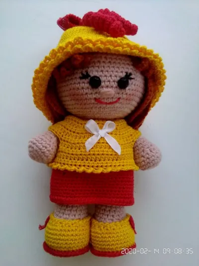 Добрый день! Моя очередная работа куколка пупс в костюме школьного звонка связана по мастер классу Татьяны Соколовой.Мне очень нравятся ее идеи и мастер классы. Рост куколки 25 см вместе с шапочкой, без шапочки 17 см. Для куколки использовала пряжу ALIZE Cotton Gold hobby, состав 55% хлопок, 45% акрил в 50 гр 165 метров.Крючок 1,25. Одежда снимается, связана из АННА 16.Волосы связаны из остатков какой-то пряжи.