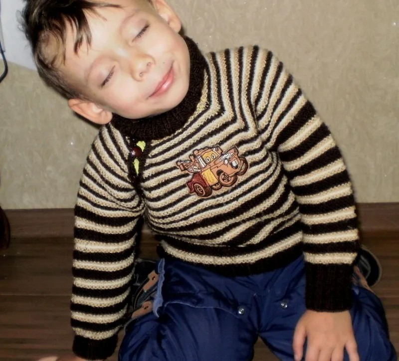 Оригинально, самое главное — тепло, уютно и ни у кого больше нет такой кофточки! Стильно, малыш доволен! Очень понравился цвет, подбор полосочек!