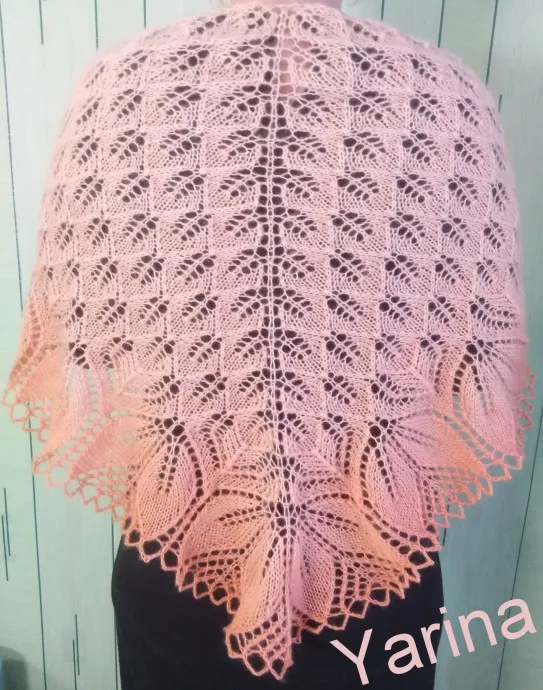 Прелестная работа. Ирина, а можно детали: сколько пряжи ушло, размер спиц и размер шали? Благодарю…