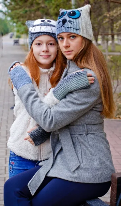 Прекрасный тандем! Скажите, шапочки — просто прямоугольник или с какими-нибудь прибавками-убавками? Примерно такое хочу связать внучке и ее подружке, поэтому нужен профессиональный совет. Спасибо
