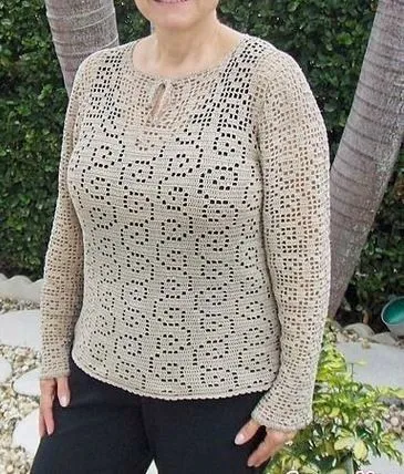 Тонкий пуловер крючком