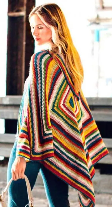 Пончо в радужную полоску.