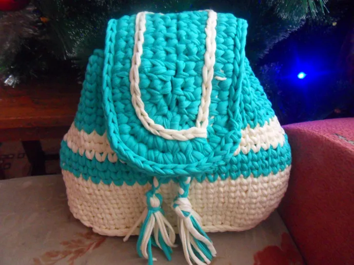 Я думаю, что если кто-то пробовал вязать из трикотажной пряжи, то непременно будет вязать еще. Вот и я сейчас довяжу очередное изделие и возьмусь за трикотажную пряжу. Есть заказик на детский рюкзачок. А так пока немного. Рюкзак для старшенькой и корзиночки для мамы.