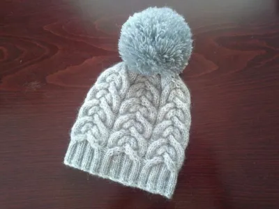 Узор для шапочки с объемным узором, вяжем спицами