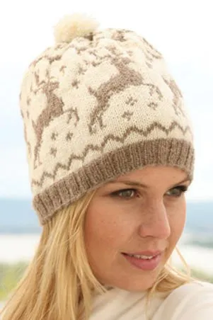 Интересная зимняя шапочка, узор с оленями не теряет популярности