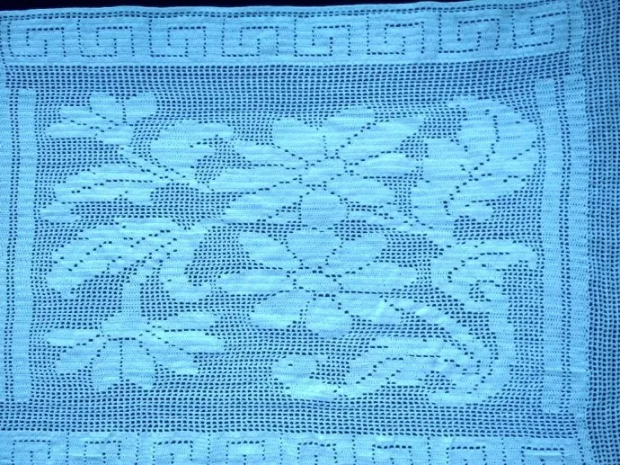 Вот и связалась салфетка.После стирки,пока не высохла была очень жесткая. Боялась что сбежится, размер стал правда меньше. Но вот высохла и стала мягкой , и размер восстановился. Нитки сапфир 2 мотка.