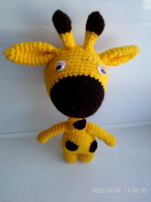 Добрый день уважаемые рукодельницы! Жирафик Жорик и я поздравляем всех женщин с наступающим праздником 8-е Марта! Желаем здоровья,любви, счастья, благополучия, весеннего настроения, и конечно творческих побед! Жорик связан из кисловодских ниток, 100% акрил, крючок №2. Рост 29 см.