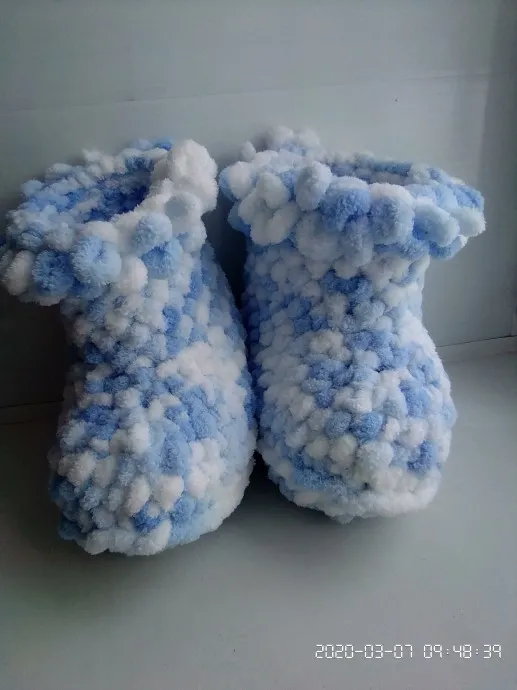 Всем доброго дня! Вот такой подарок приготовила для мамы на 8-е Марта. Ей 91 год, думаю, что понравятся.Связаны без спиц и крючка, пряжа ALIZE PUFFI ушло 2,5 моточка на 37 размер.
