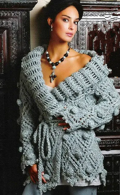 Утонченный кардиган объемной вязки по схеме вязания спицами для женщин с подобным описанием станет доступным даже для начинающих мастериц.