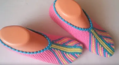 Подобные только что связала на подарок к 8 Марта. Только процесс вязки иной. Вязала укороченные ряды, затем набирала петли по верху и сбоку. Вязала след на центральных петлях (как пяточку). Далее по прямой и сама пятка. Без шва