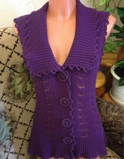 Сиреневый жилет спицами