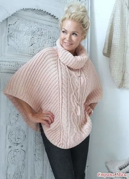 Теплое пончо, вяжем спицами