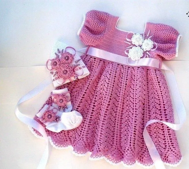 Какую девочку не привлекает розовый цвет? Наверное, у женщин заложено это на уровне ген! Увидела это детское платьице, и сразу захотелось связать! До того красивое и нежное изделие. Можно выполнить в любом цвете, но меня вдохновил именно этот оттенок.