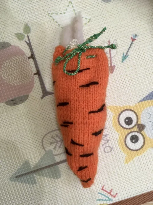 Игрушка для внучки.Связана из ангорки и акрила.Морковка,в которой живет Зайка.