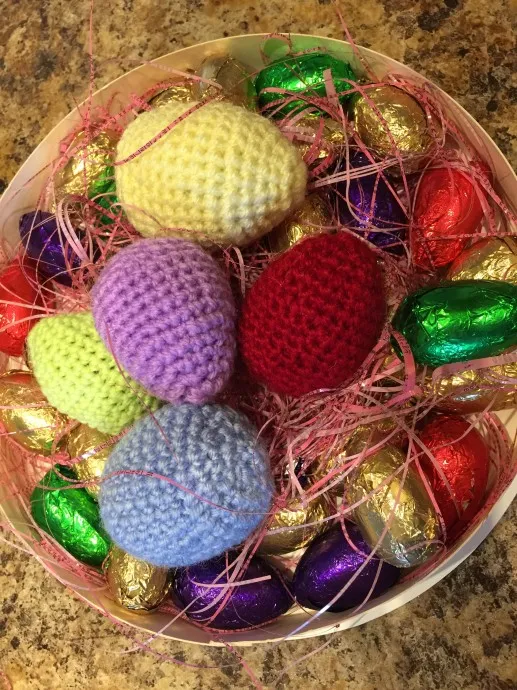 Накопилось много остатков пряжи, решила навязать красоту... пасхальное яйцо.