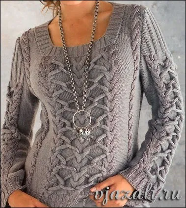 Модный джемпер с косами и жгутами вязаный спицами - красиво, тепло, удобно! Размеры джемпера: 34/36 – (Р1), 38/40 - (Р2), 42/44 - (Р3), 46/48 – (Р4), 50/52 - (Р5)