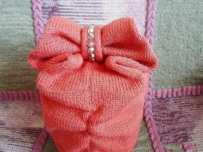 Самое главное при вязании данной шапки связать нужную высоту, чтобы потом не мучиться с оформлением банта