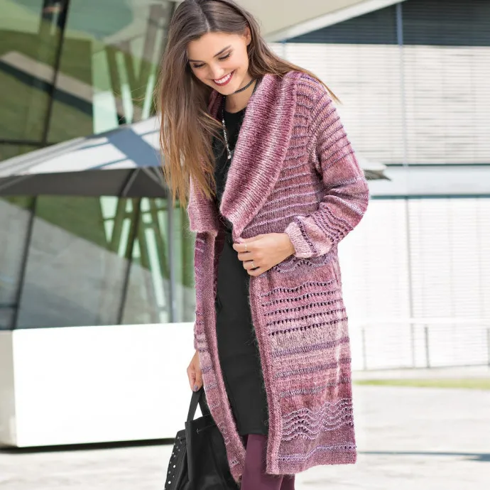 Захватывающее сочетание тончайшего мохера и мерцающей пряжи с блеском: пальто с широким воротником — это подлинное произведение модного искусства.
