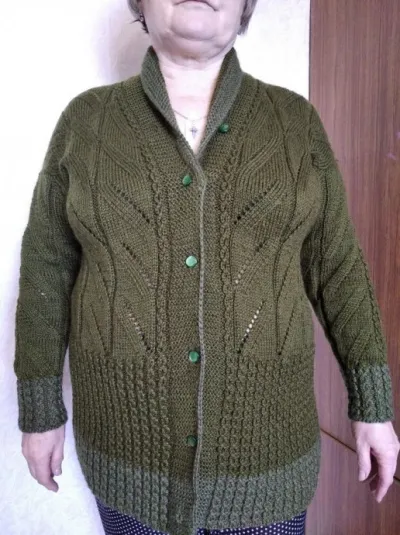 Хорошая добротная модель — связано очень ровненько и цвет благородный, но согласна — эти надвязки смотрятся, как будто вещь стала мала и сделали надвяз… или убрать надвяз, или распустить все! но кофта очень хорошая) и таки да — первая пуговица не на месте, и судя по планке — это не надвяз, а основа… жалко, но распускать однозначно! Вы мастер — у вас все получится!!!