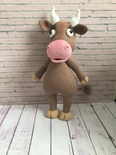 Бычок связан крючком. Рост 37 см. Символ будущего года.