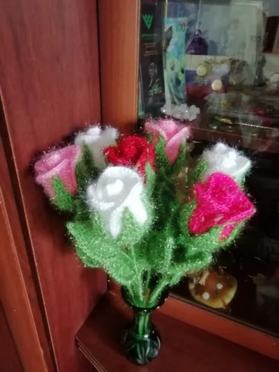 Розы связаны из пряжи Аделия "бриллиант".