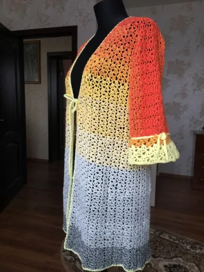 Кардиган связан крючком очень интересным узором «Веерок», размер 50-52 , скоро лето!