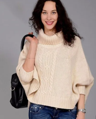 Нежный и теплый свитер с рукавами "летучая мышь", вяжем спицами