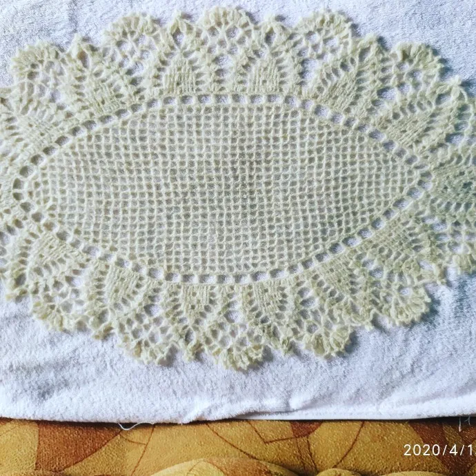 Связала салфетку размером 70х47 см. Нитки даже и не знаю какие, остатки, были очень жёсткие, а когда простирала, то стали мягкие, в них попадались даже палочки. Может это шерсть? Схему тоже у себя нашла в старых запасах. Крючок по всей вероятности 2.